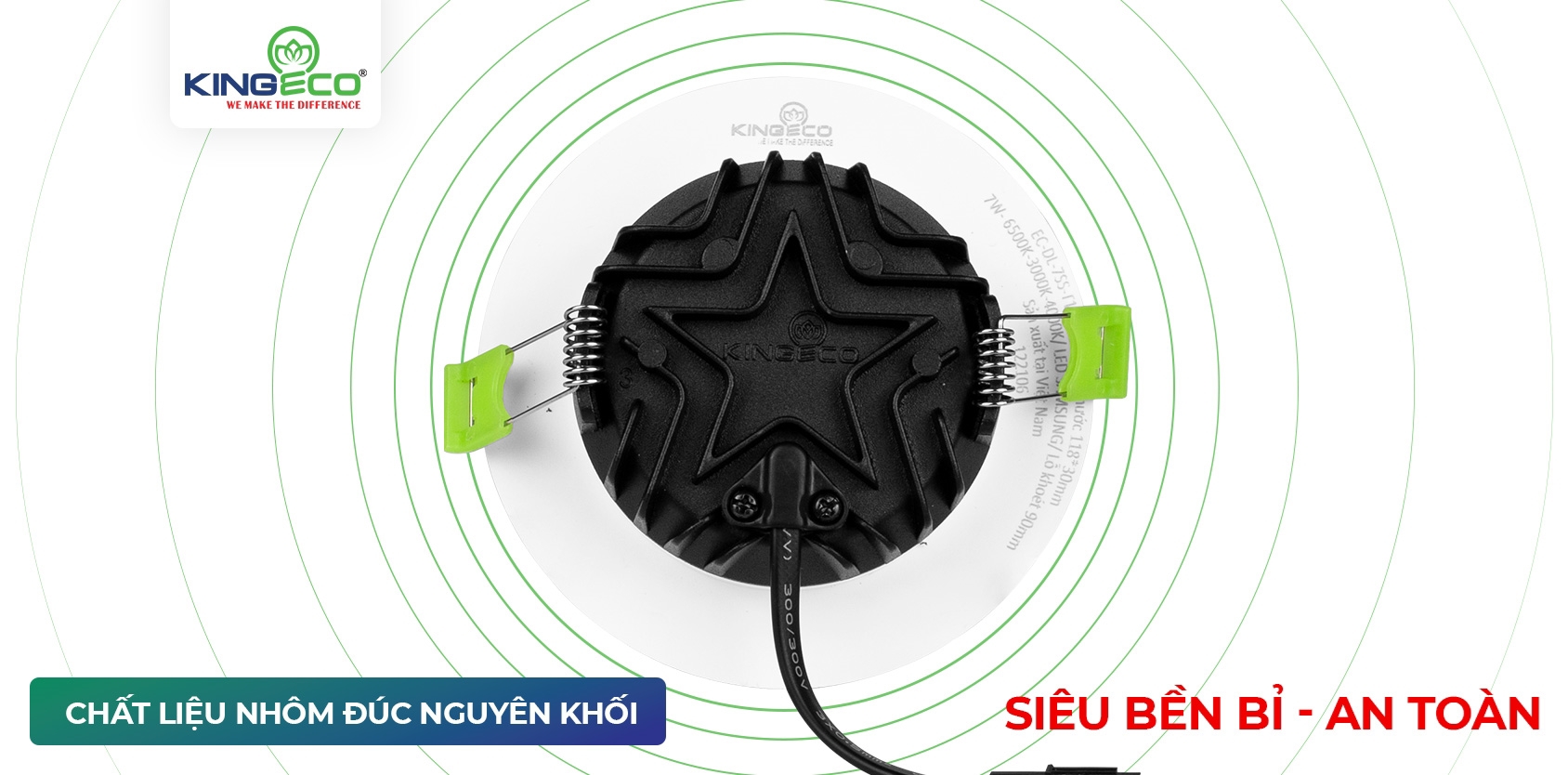 Phần đế chứa nhiều cánh tản nhiệt mỏng và cao cho phép tản nhiệt hiệu quả đảm bảo tuổi thọ 50.000 giờ. Vật liệu được lựa chọn cẩn thận đạt tiêu chuẩn an toàn và phù hợp với điều kiện sử dụng.