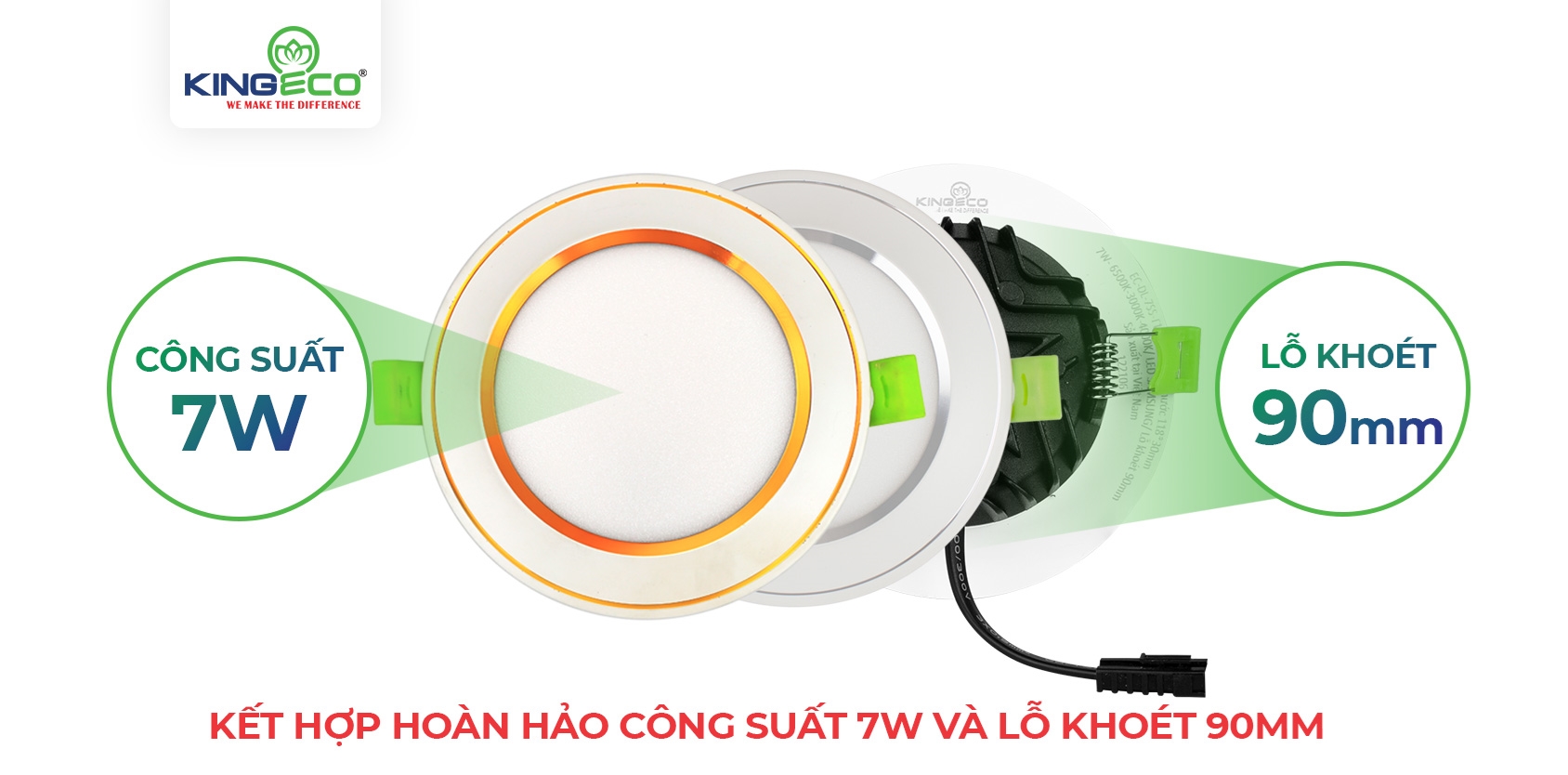 Các loại đèn led Kingled sở hữu 3 màu sắc ánh sáng là: Trắng - Vàng - Trung tính