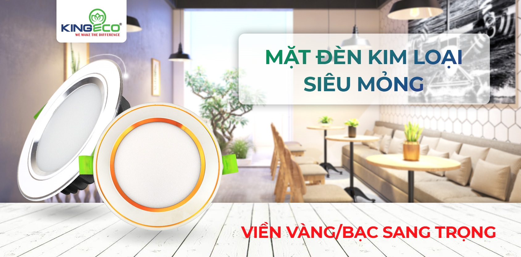 Mặt đèn kim loại được thiết kế siêu mỏng ôm sát mặt trần. Trên mặt đèn led âm trần được tạo điểm nhấn bằng viền Vàng/ Bạc mang đến cho ngôi nhà vẻ sang trọng, tinh tế.